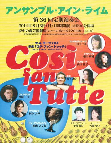 140803 応援している江口二美さんが、初役でフィオルディリージを演じるという、いささか緊張の舞台。蓋を開けてみれば、実に堂々たる演唱で、終始Bravissssimaであった。 主役陣は、4人4様にすばらしく、バランスが取れていて、十分楽しめる舞台に仕上が…